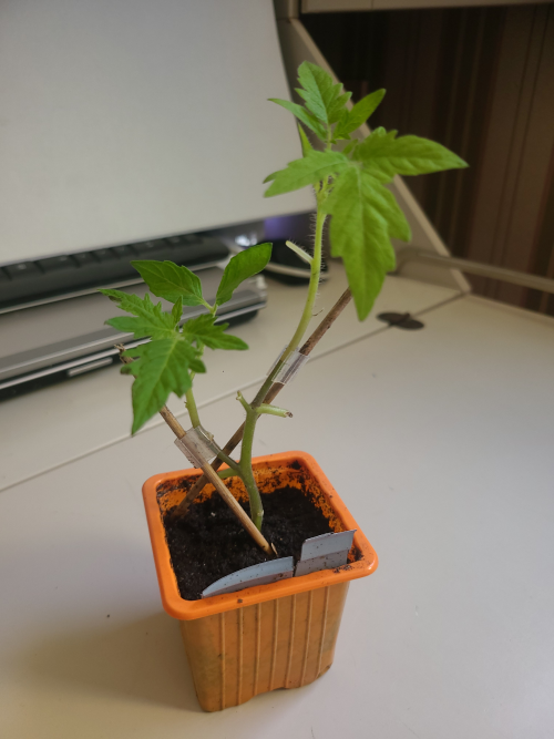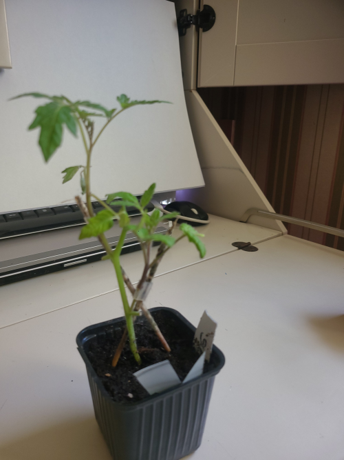 Sur chaque pied du porte greffe PROTECTOR , j'ai greffé 2 variétés-- 2 variétés de tomates cerises exemple sur le pot jaune Black Cherry et Cerise Rayée